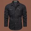 Large Size Men's Long-sleeved Solid Color Casual Loose Work Shirt