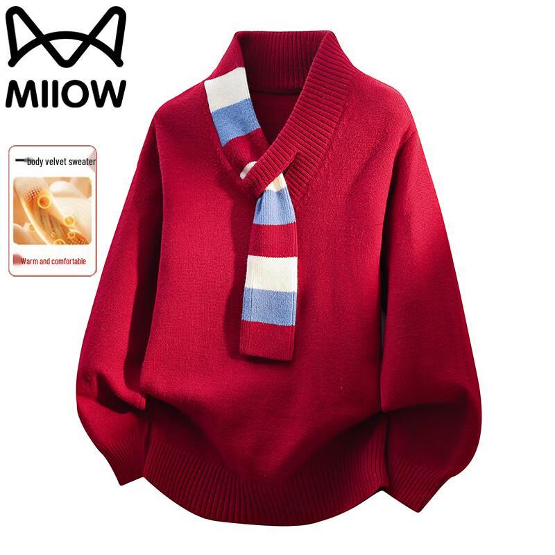 MIIOW Men's V-Neck Scarf Collar Knitted Sweater