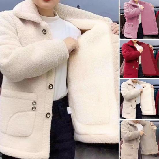 With its simple yet elegant design, this plush jacket exudes sophistication and style. The classic single-breasted placket and hand pocket details add a touch of femininity to the overall look.