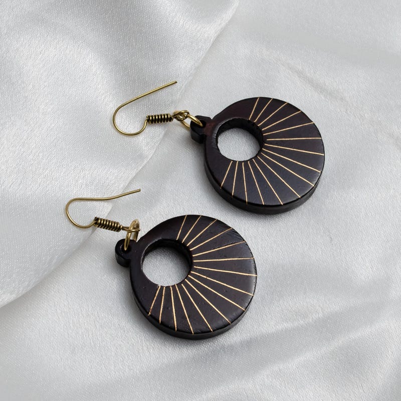 Sheesham Wood Earrings: German Silver Inlay, Optic...