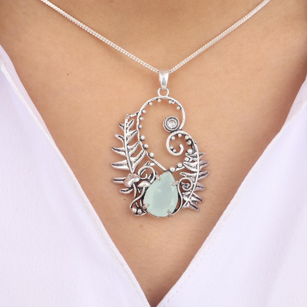 Aqua Chalcedony Gemstone 925 Sterling Silver Handcrafted Unique Pendant 1.8" CP-42-18