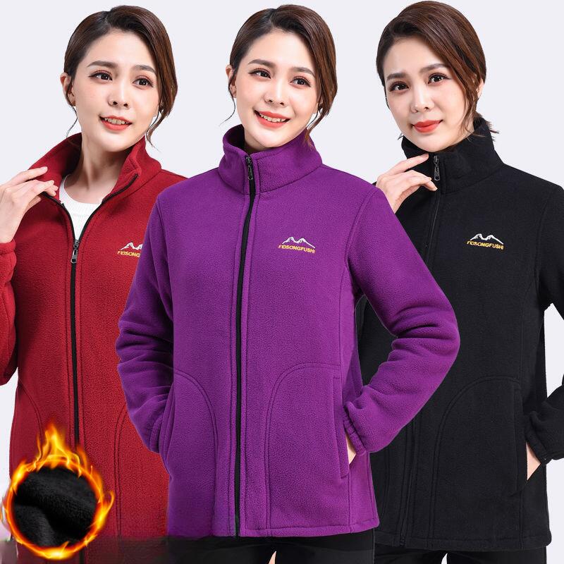 Women's Autumn and Winter Polar Fleece Women's Jacket Plus Velvet Thick Warm Fleece Sweater Loose Plus Size 5XL Mother's Wear