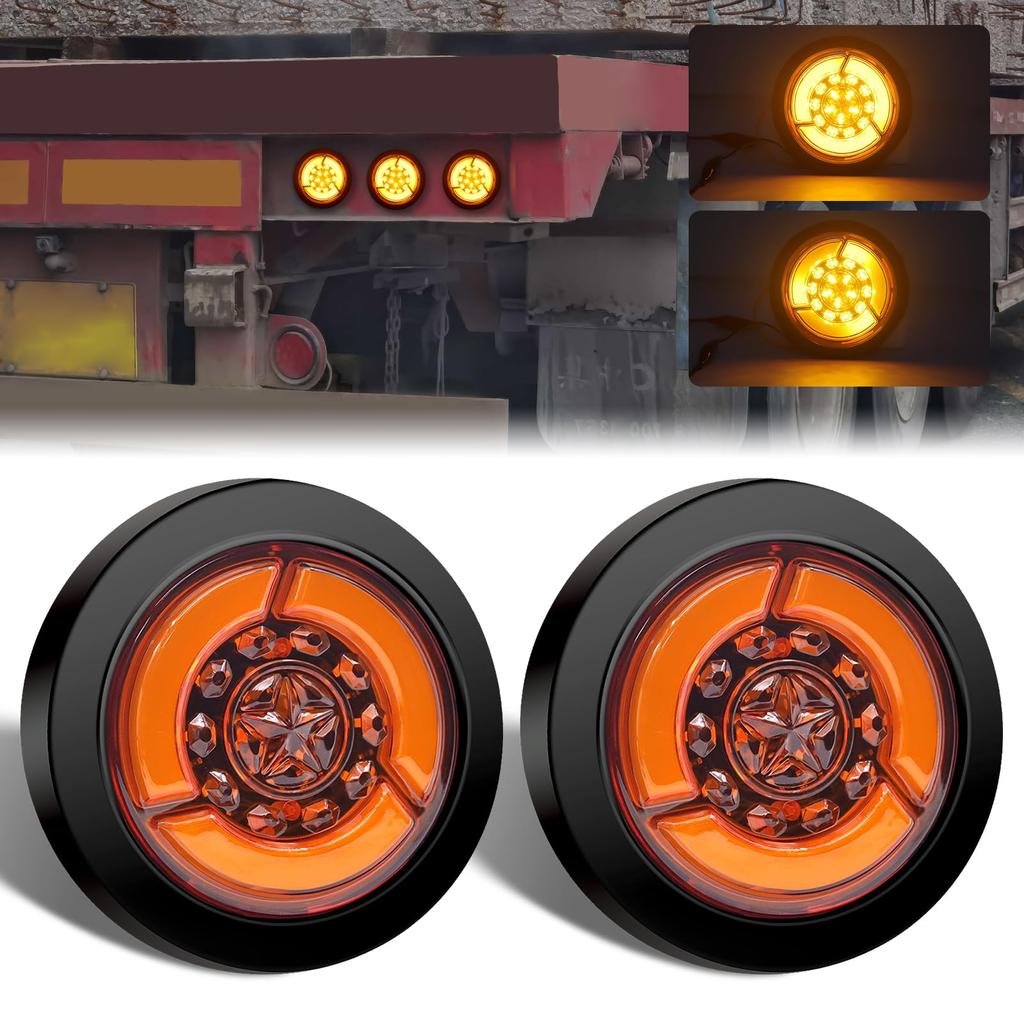 Aoling Truck LED Tail Lights, 12V/24V, Trailer Tail, Round, Turn Signal, Small Brake Light, Waterproof, Universal, 2-Piece Set