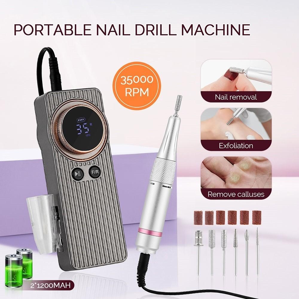 35000RPM Low Noise LCD Display Nails Beauty Tools Portable Nail Drill Exfoliation Remove Calluses Nail Removal Polisher