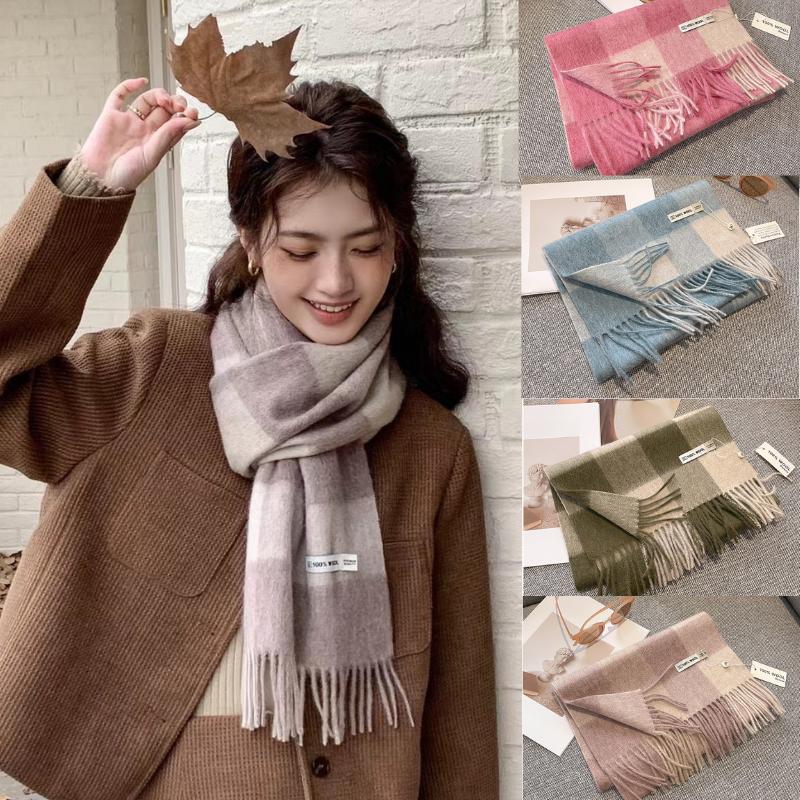 Checkerboard Grain Scarf Female Winter Warm Pure Wool Cashmere Shawl Couple Accessory Premium Sense Windproof Scarf For Women