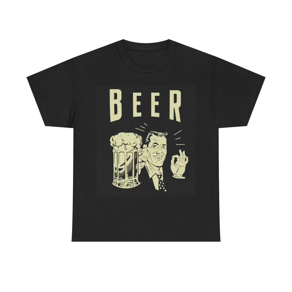Beer Shirt Funny Thumbs Up Retro Poster Graphic Unisex Heavy Cotton Tee