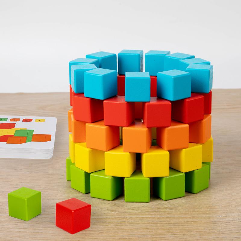 Wooden Rainbow Cube Teaching Aids Large Particles Square Building Block Number Sense Children's Space Thinking Educational Toys