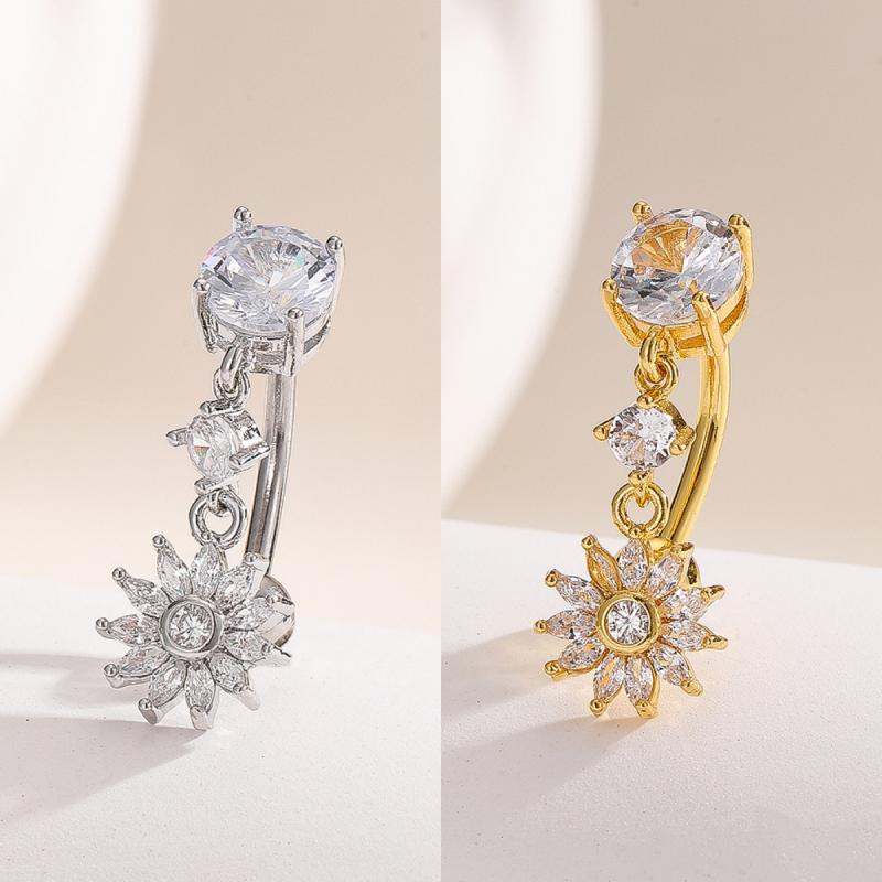 Fashion Zircon Heart Angel Wings Belly Button Ring Crystal Flower Navel Ring Barbell For Women Girls Belly Piercing Body Jewelry