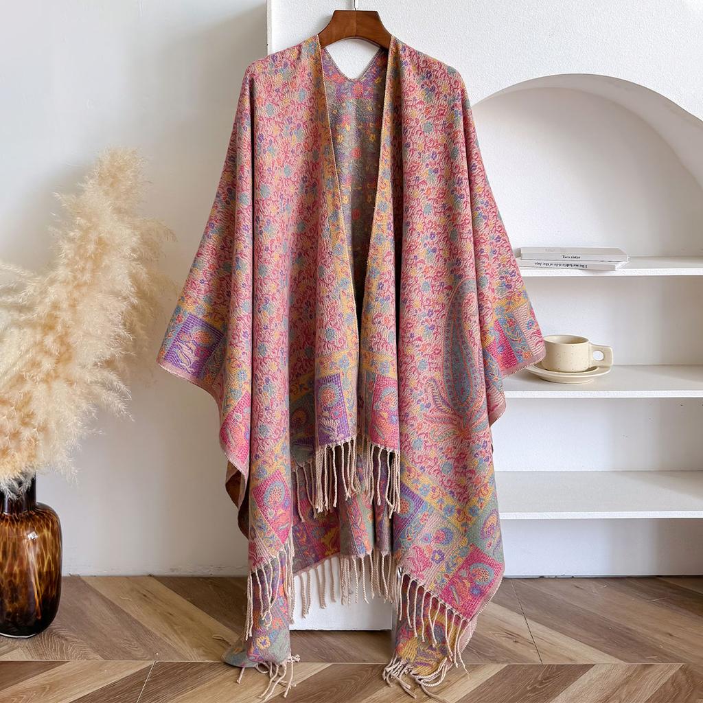 Winter Women Poncho Warm National Style Large Shawl Paisley Print Thickening Blanket Luxury Scarf Female Cloak Pashmina