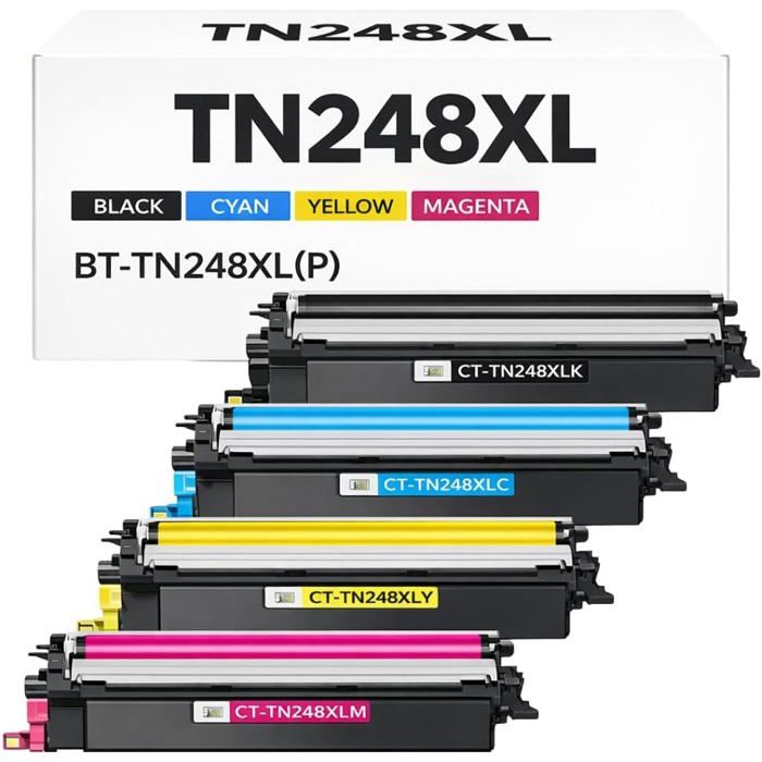 Pack of 4 Toners - SHOP-STORY - TN248XL - Compatible Brother - High Performance - Laser