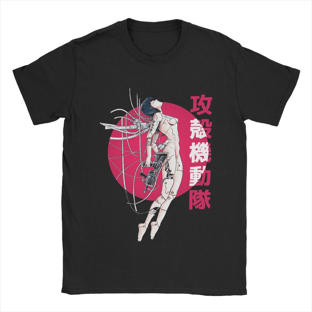 Ghost In The Shell Sun T Shirt for Men 100% Cotton Amazing T-Shirt Crew Neck Anime Manga Tees Short Sleeve Clothes Plus Size
