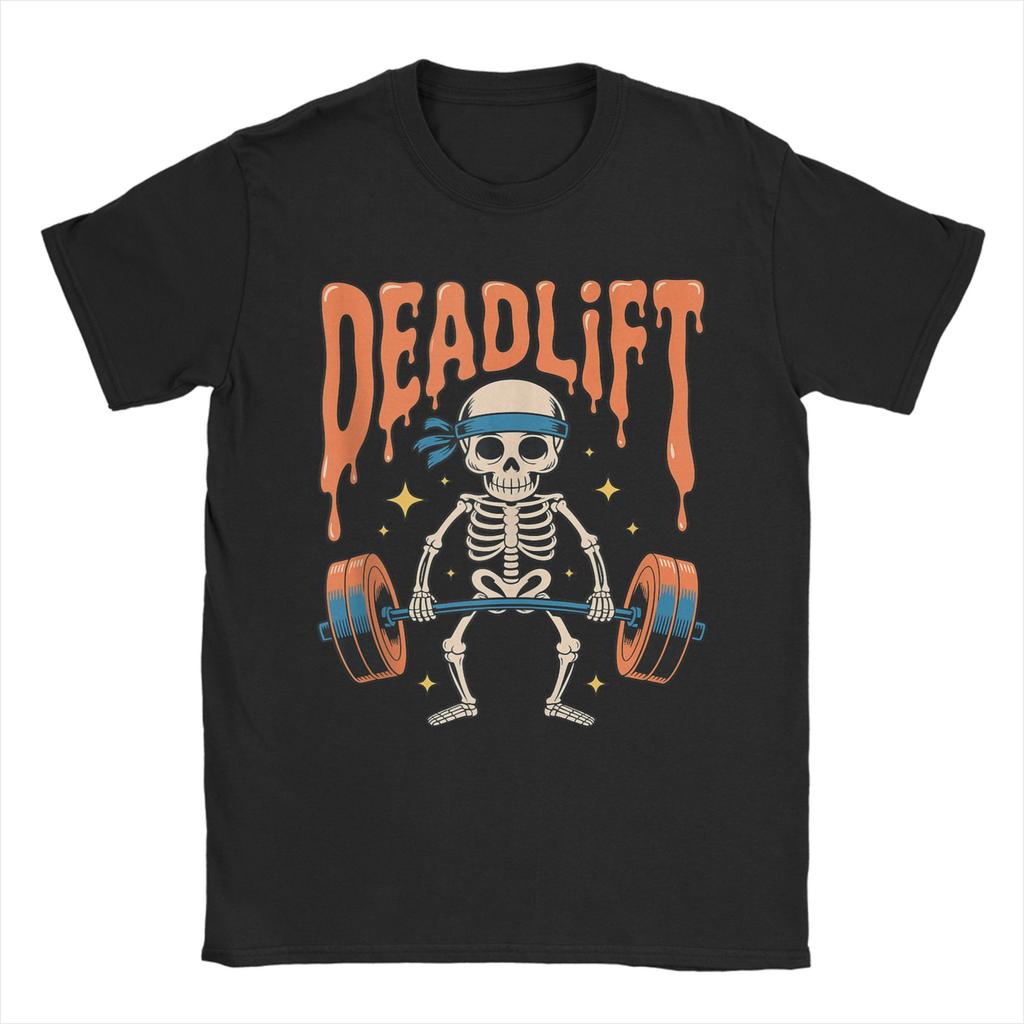 Streetwear T-Shirt Beach Funny Skeleton Deadlift Halloween Gym Workout Trendy T-Shirts Cotton Tshirt Man Y2K Retro Design Tops