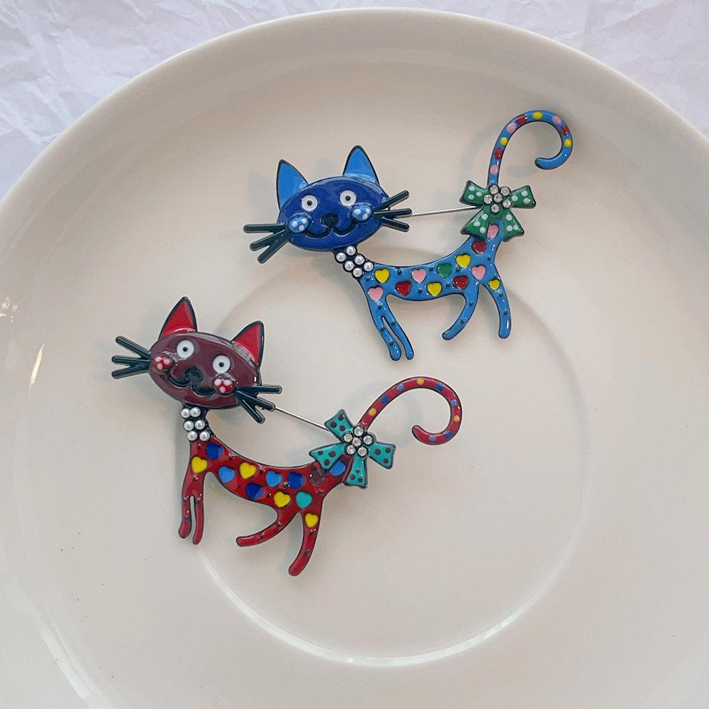 Dripping Oil Cat Brooch, Colorful Enamel Chest Flower, Women's Coat Button, Suit Clip, Clothing Accessory
