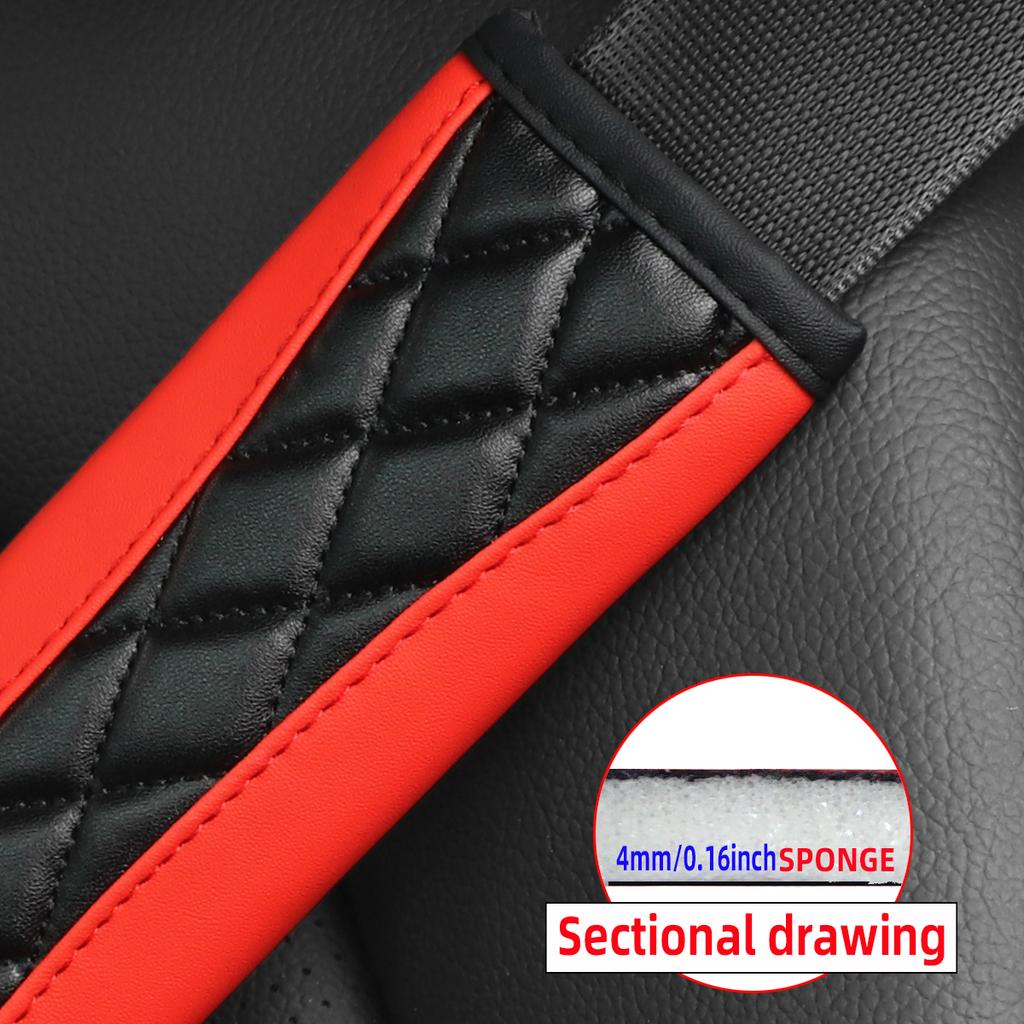 2 Plaid Embroidered PU Imitation Sheepskin Comfortable Soft New Car Seat Belt Shoulder Cover Automotive Supplies for Men and Wom