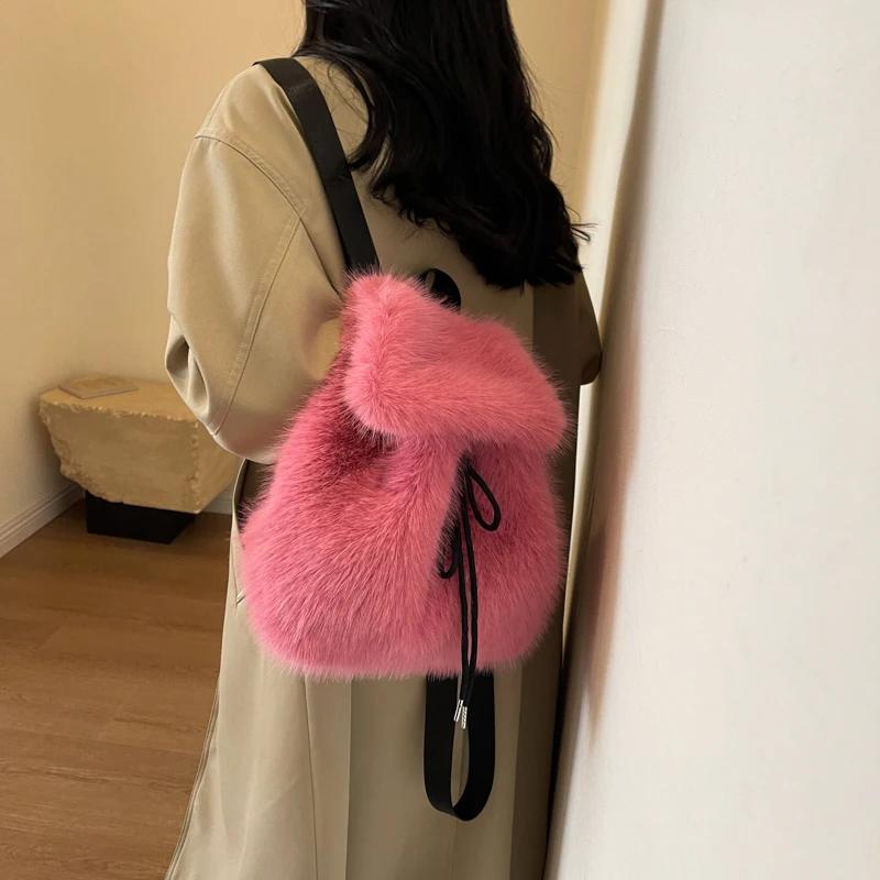 New Faux Fox Fur Backpack 2025 Womens Drawstring Flap with Magnetic Closure Large Capacity School Bookbag Casual Use