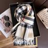 2024 Trendy Unisex Plaid Cashmere-Feel Tassel Shawl Snood Scarf for Autumn/Winter
