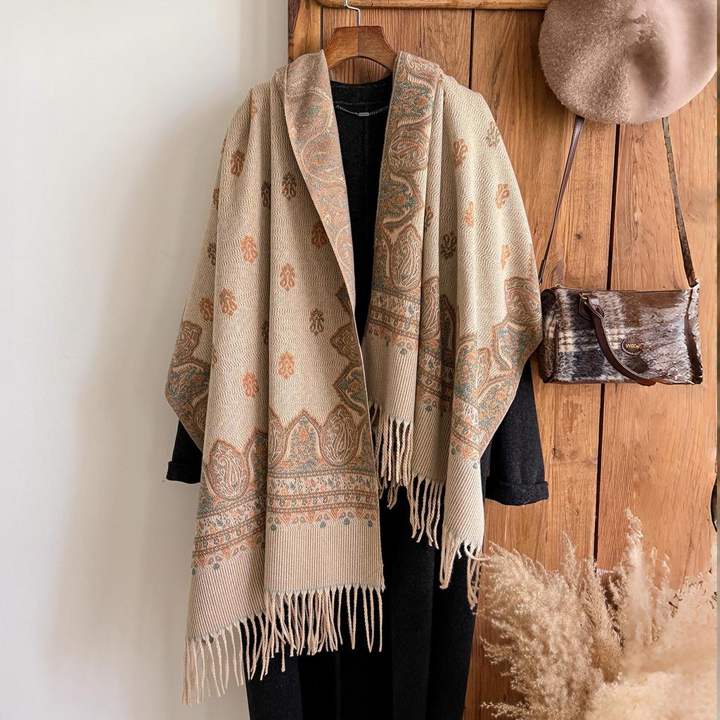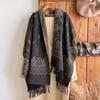Fashion Women'S Winter Warm Cashmere Shawl - Vintage Floral Oil Painting Printed Tasseled Pashmina Thick Wrap