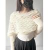 Autumn Winter Women'S Knitted Shawl Scarf With Long Sleeve Outdoor Warm Soft Windproof Hollow Out Crop Top Shrugs Shawl Scarf