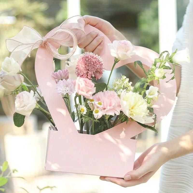 10pcs Heart Hollow Out Flower Bouquet Gift Box Handheld Flower Box Birthday Wedding Anniversary Perfect for Rose Tulip and More