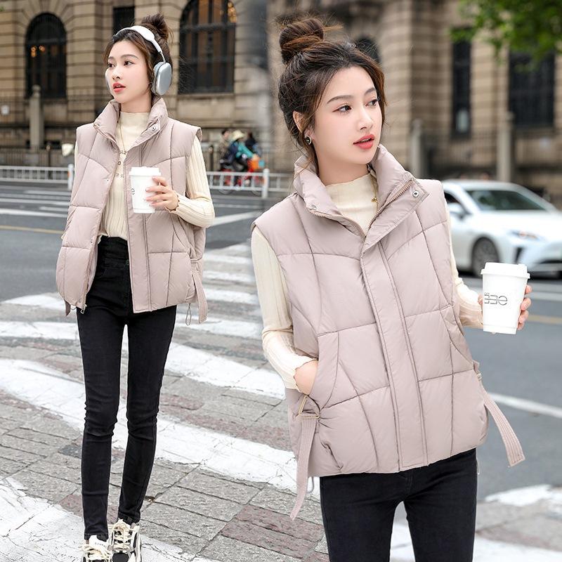 Down Cotton Vest Women's Winter New Korean Version Loose and Lightweight Stand-up Collar Design Streamer Thermal Vest