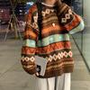 Autumn Winter Round Neck Vintage Jacquard Sweater Male Loose Casual Fashion Knitting Top Pullovers Top Men