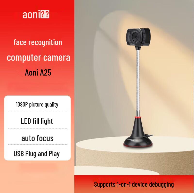 Aoni A25 1080P Face Recognition Webcam with Fill Light