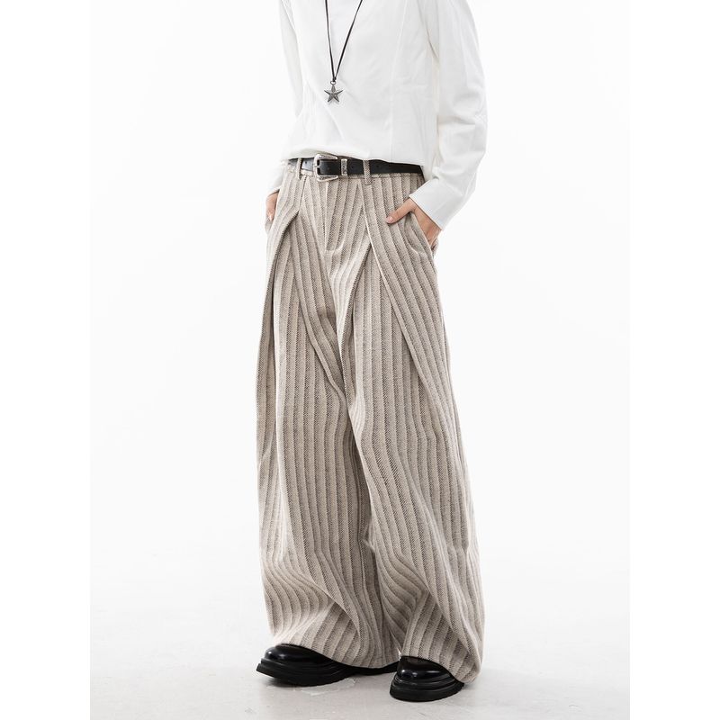 Dream Made Old Money Style Pleated Striped Woolen Trousers Men's Straight Loose Wide-Leg Pants Spring and Autumn Trousers