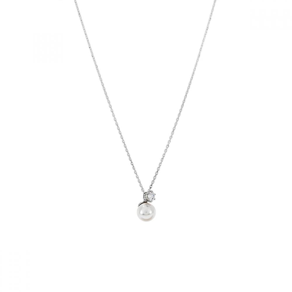 The Swarovski 5693897 Matrix Pearl Necklace is a women's necklace featuring luxurious rhodium plating, crystals, and pearl embellishments. Its sophisticated design complements any style, reflecting an elegant and refined taste. The necklace can be conveniently adjusted for wearers' comfort, ranging from approximately 38cm to 45cm in length. While the chain at the back may lead to the necklace lifting due to its slightly heavier weight compared to the pendant, it settles comfortably when worn for an extended period.