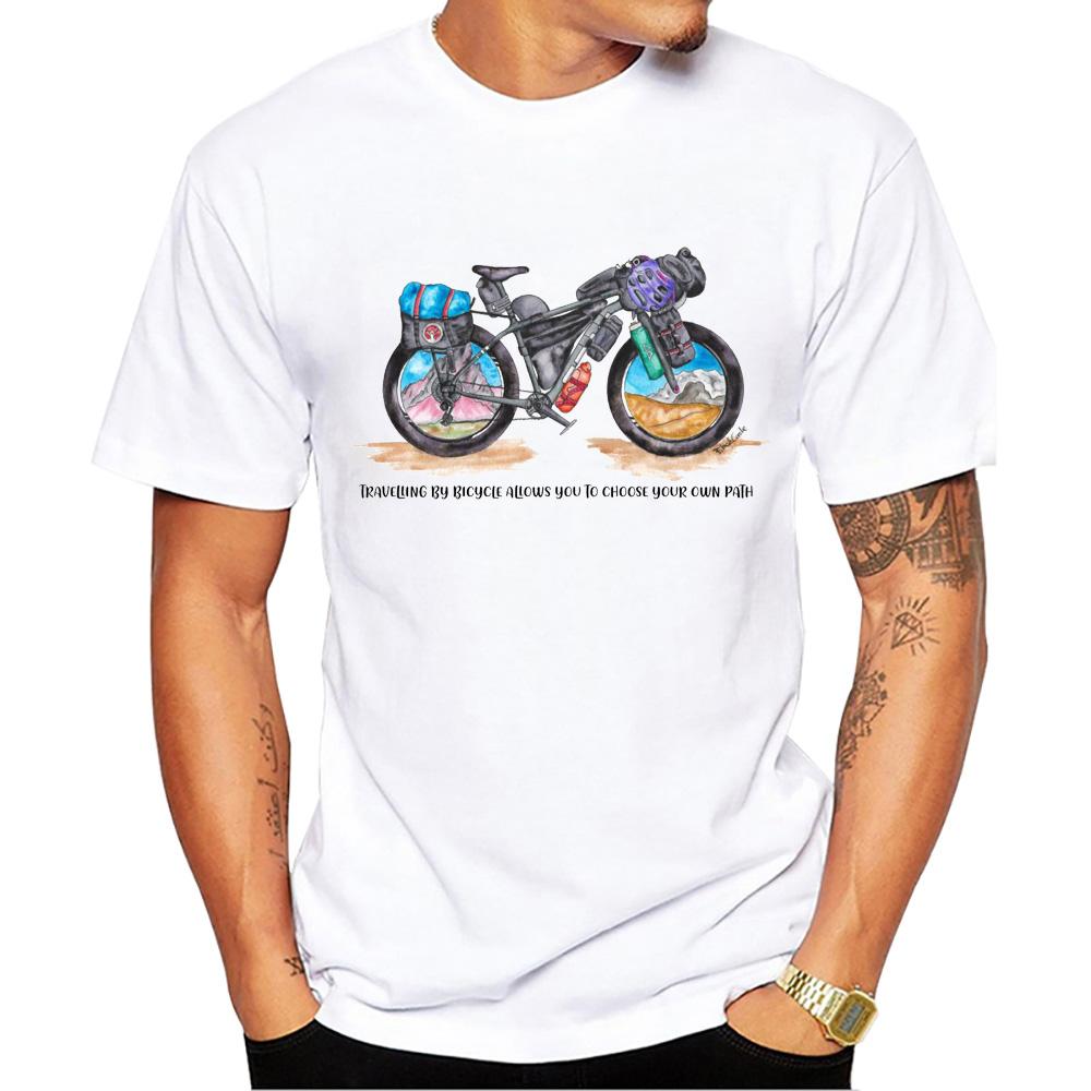 TEEHUB Vintage Bikepacking Men's Tops Bicycle Rig Watercolors Print T-Shirt O-Neck Men T Shirts Short Sleeve Male Casual Tee