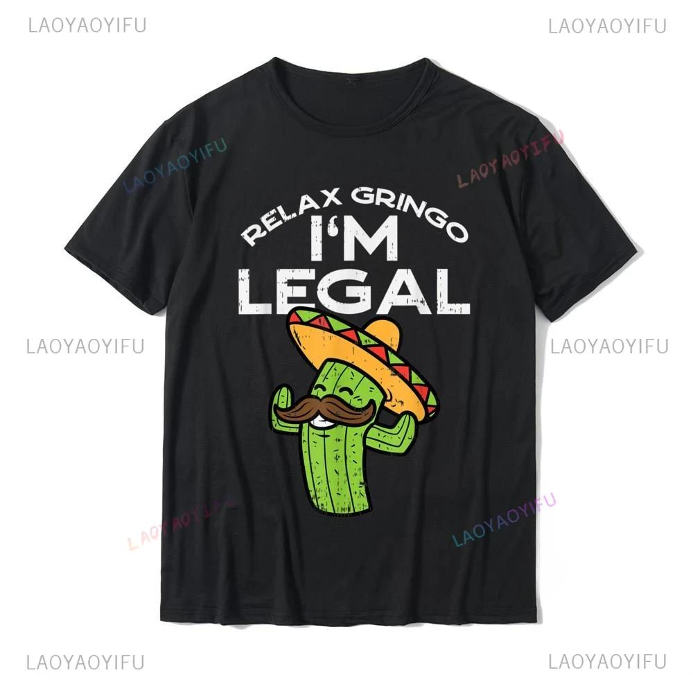 Funny Adult JOKE Relax Gringo Im Legal Cinco De Mayo Mexican T-Shirt Casual Fashion Loose Streetwear Man Tshirt Hip Hop Y2k Tees