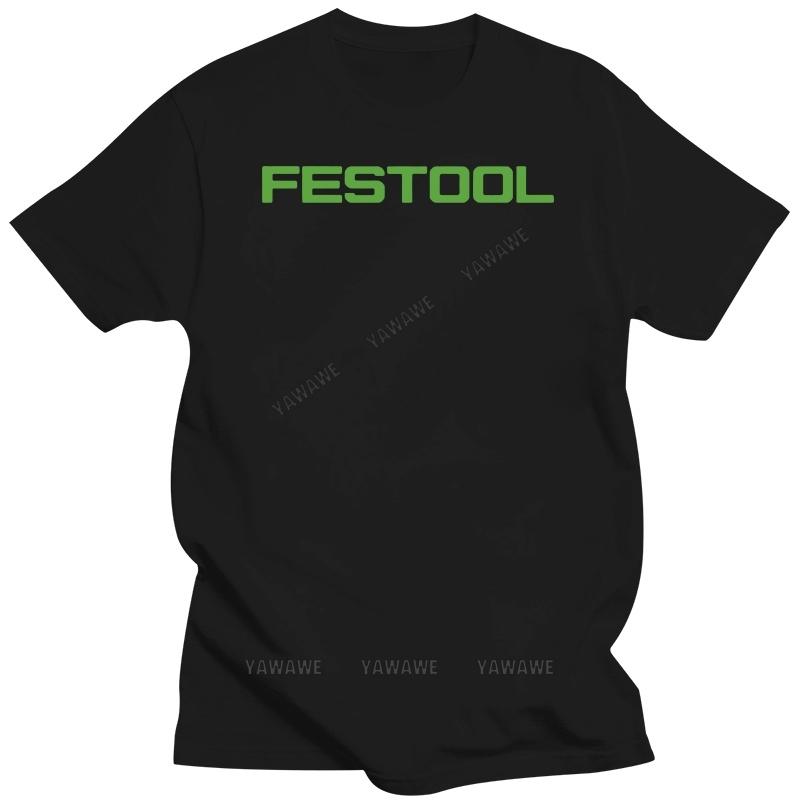 Hot Sale Short Sleeve Classic Festool Powertools Logo Black Tee Shirt Men's Casual Style Cotton Bottoming T Shirt O-neck Tops