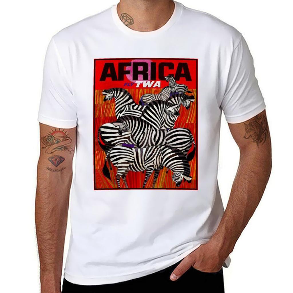 AFRICA : Vintage Airline Travel Advertising Print T-Shirt Cotton T Shirts Man 100% T Shirt for Man T-Shirt