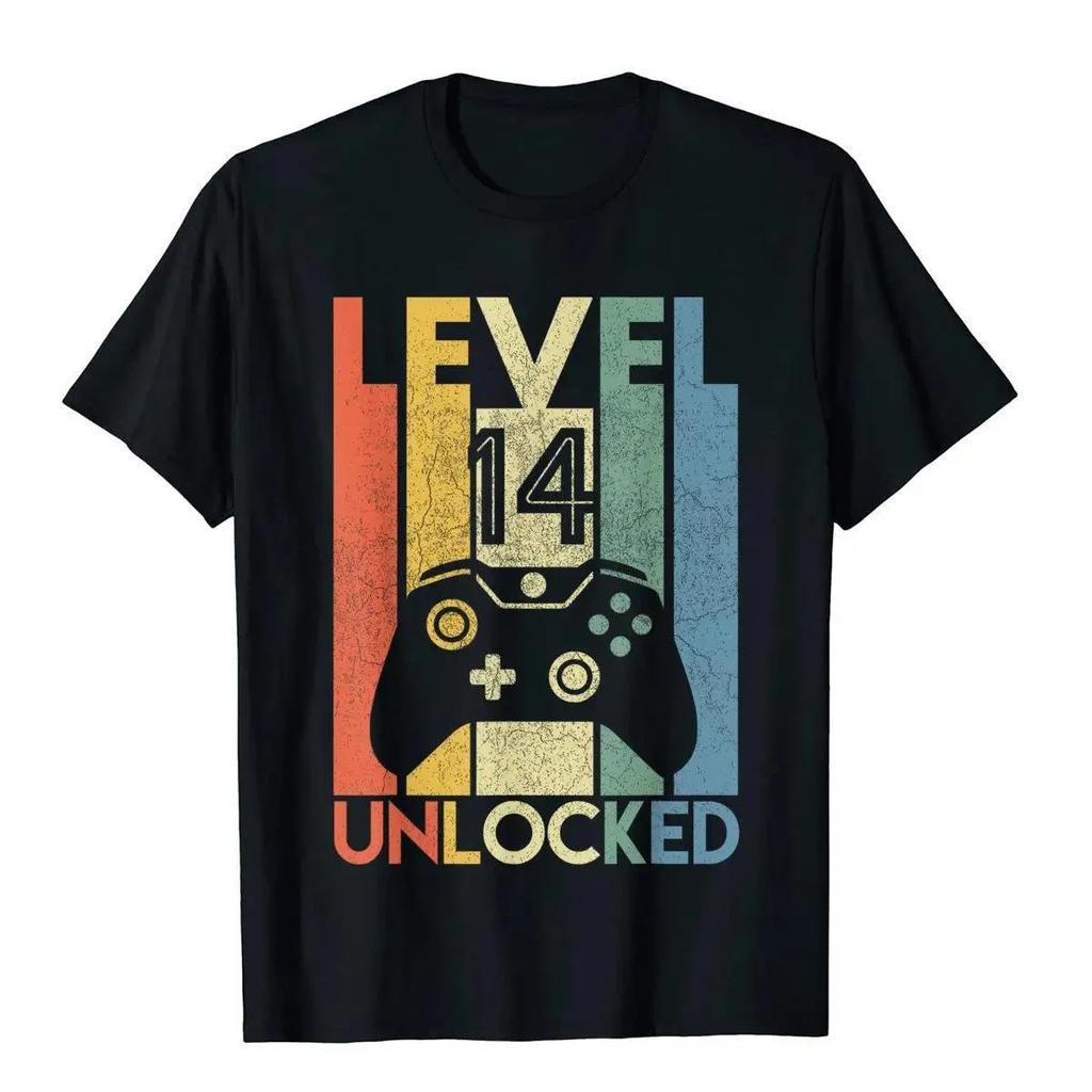 Level 14 Unlocked Shirt Funny Video Gamer 14th Birthday Gift T-Shirt Novelty T Shirt For Men Cotton Tops T Shirt Prevalent