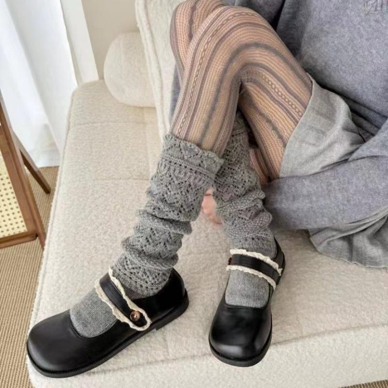 Black Fungus Edge Mid-calf Pile Socks To Shape Legs, Sweet Heart-shaped Socks for Women, Solid Color, Slimming, Breathable and Versatile Socks