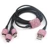 USB Car Charger Bling Bling Handmade Rhinestones Crystal Car Decorations for 3-in-1 5V 2.1A Car Decors for IPhone/Samsung