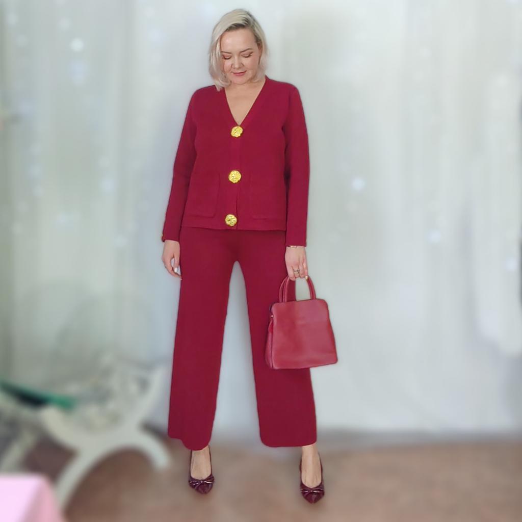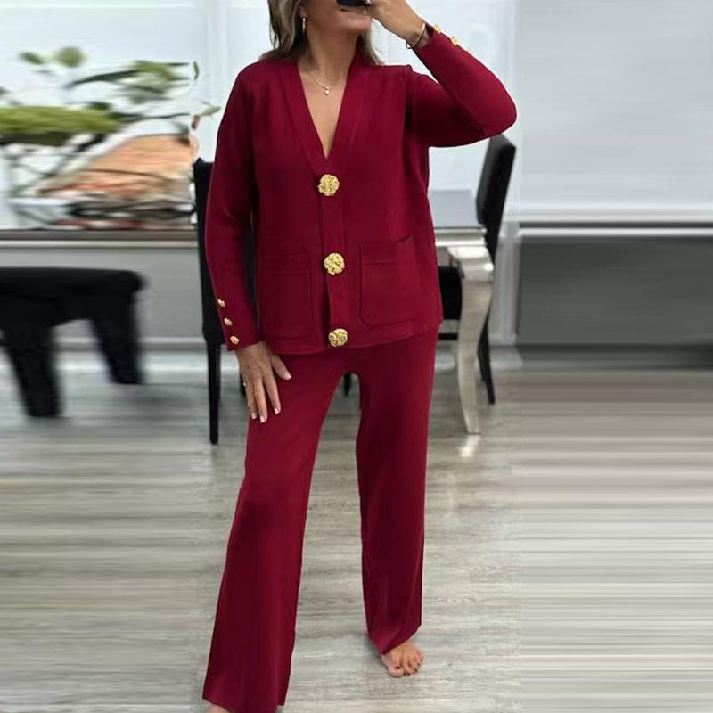 Cozy Knit Cardigan Pants Women Set Loose V-neck Pocket Button Coat Wide Leg Trousers Autumn Winter Fashion Lady Outfit