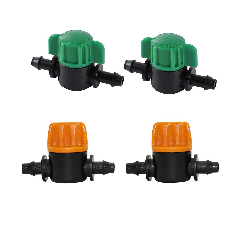 Packaging:5 Pcs x Miniature valve for 4/7mm hose(choose the color you liked)Plastic 1/4" pricked water flow control valve for irrigation of flowers, plants, lawns, agriculture, villas, industrial irrigation!