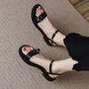 Designer New Women Sandals Luxury Narrow Leather Strap Buckle Strap Flat Sandals Wide Heel Platform Sandals Summer Casual Shoes