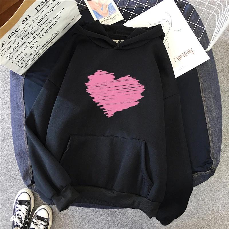 Pink Heart Printed Hoodie for Women Classic Hooded 2025 Autumn and Winter Hoodie Long Sleeve Female Causal Sporty Sweatshirts