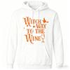 2025 Humorous Halloween Wordplay Print Sweatshirt, Witch Way To the Wine Hoodie, Spooky Fun Top for Adults Winter