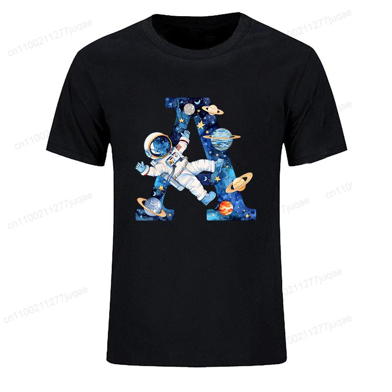 Summer Men's T-shirt Top Short Sleeved Fashionable Men's T-shirt Watercolor Space Letter Fun Men's T-shirt Boys and Children's T-shirt Casual Clothing