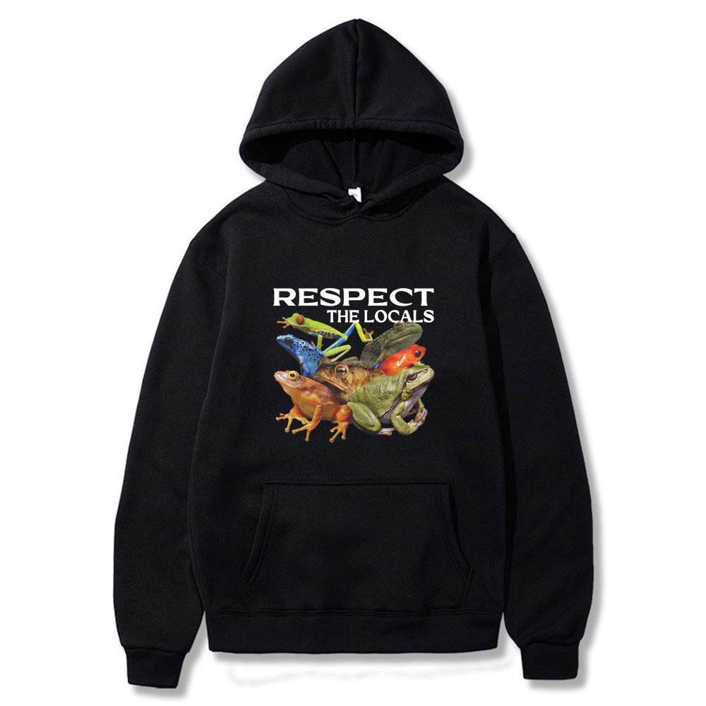 Respect The Locals Funny Frog Meme Hoodies Men's Women Clothing Fashion Casual Wears Cotton Oversized Long Sleeve Unisex Hoodie