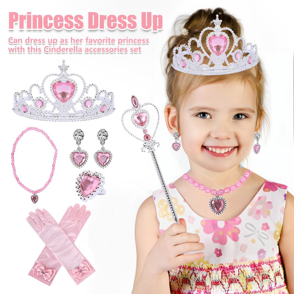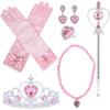 Princess Dress Up Accessories Set for Girls 6pcs Princess Costume Gloves Tiara Wand Necklace Earrings Bracelet Ring