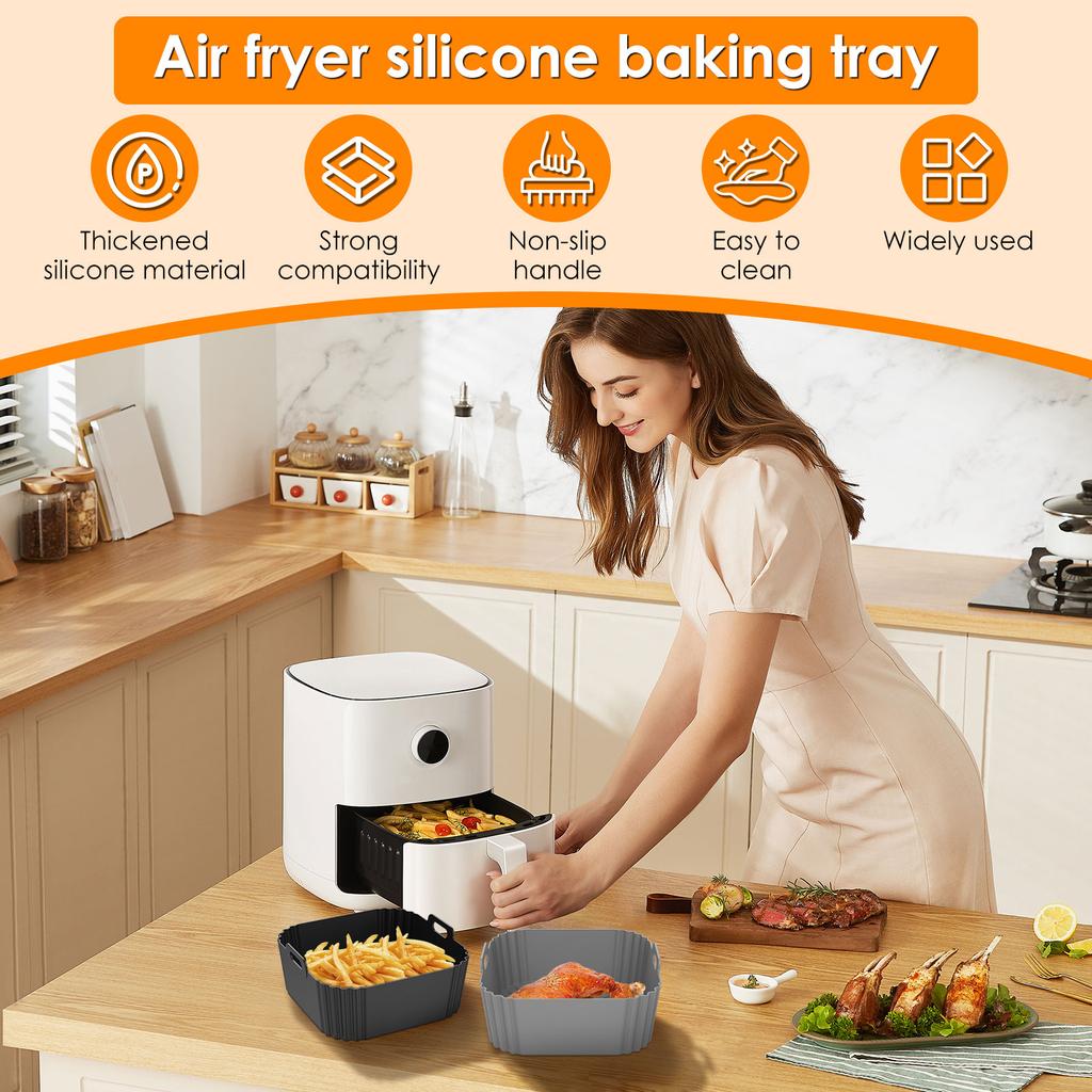 2/4pcs Reusable Air Fryer Silicone Baskets with Dual Anti Slip Handles Heat-resistant Multi-purpose Silicone Baskets for Cooking