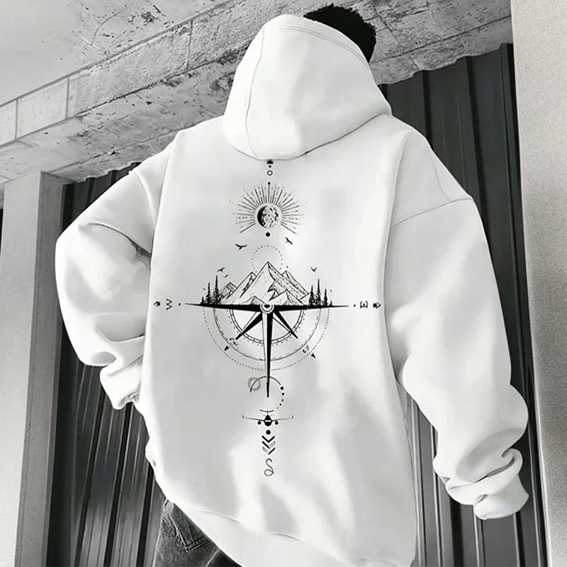 Vintage Men's Hoodie with Compass Print High-quality and Fashionable Hoodie Daily Casual Hoodie Comfortable Sweatshirt