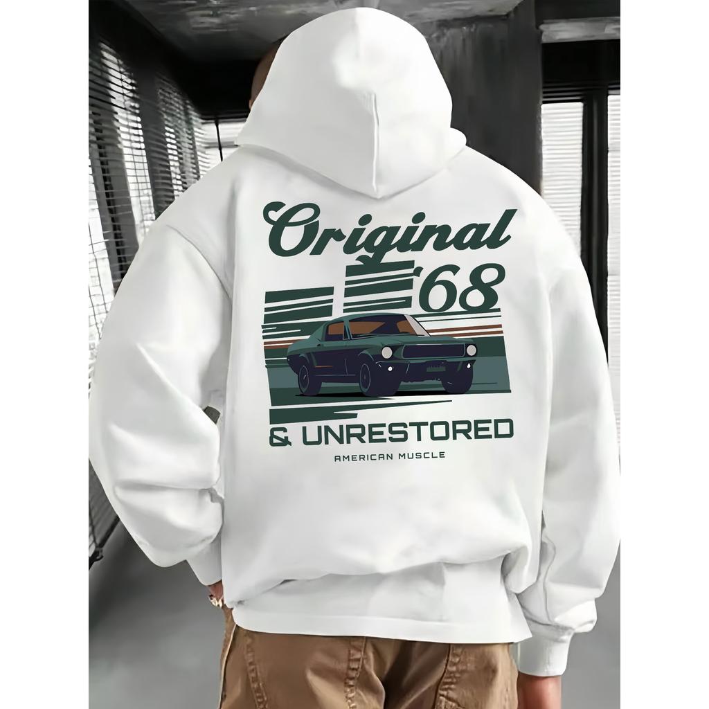 Fall Winter Original 68 & Unrestored American Muscle Vintage Car Print Hoodie for Men Fleece Thermal Hooded Street Unseix Top