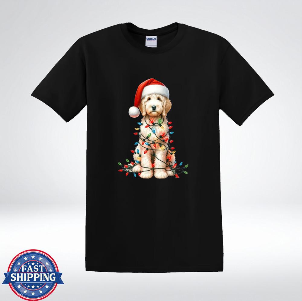 Cute Christmas Puppy Wrapped In Lights Santa Hat Holiday Dog Lover T-Shirt