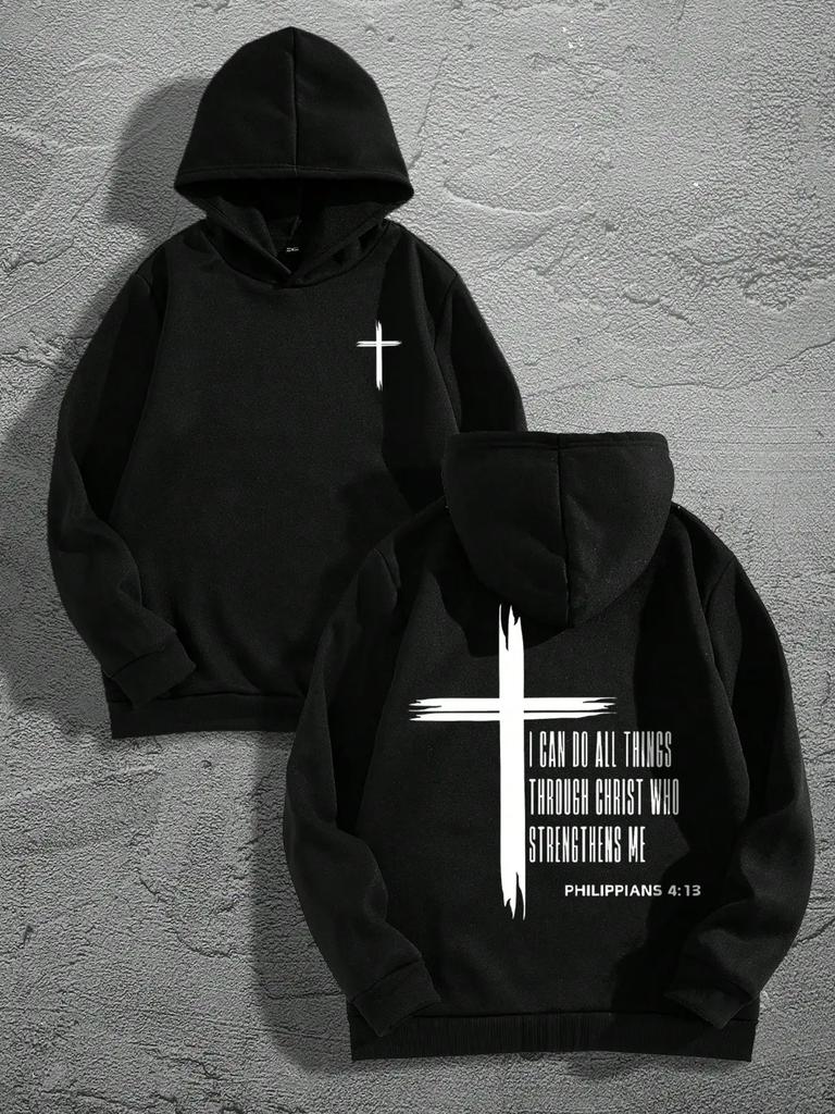 Manfinity Homme Men's Casual Hooded Sweatshirt, Simple And Fashionable For Daily Wear, Religious Hoodies