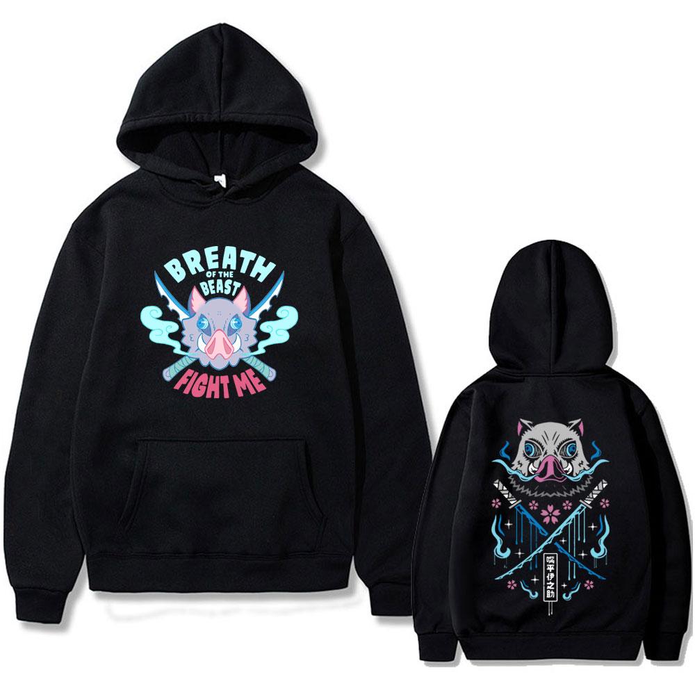 Anime Demon Slayer Hashibira Inosuke Mask Face Graphic Hoodie Men Women Casual Cotton Vintage Pullover Men's Fashion Streetwear