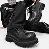 Thick-soled Men's High-end Leather Casual Big-head Heightened Black Small British Round Head Derby Shoes